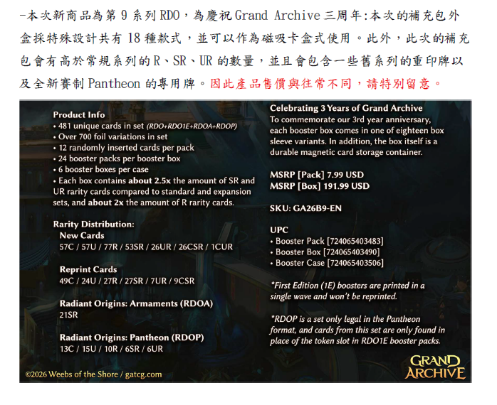 【預購】GA 補充包 第9彈 Radiant Origins (RDO)